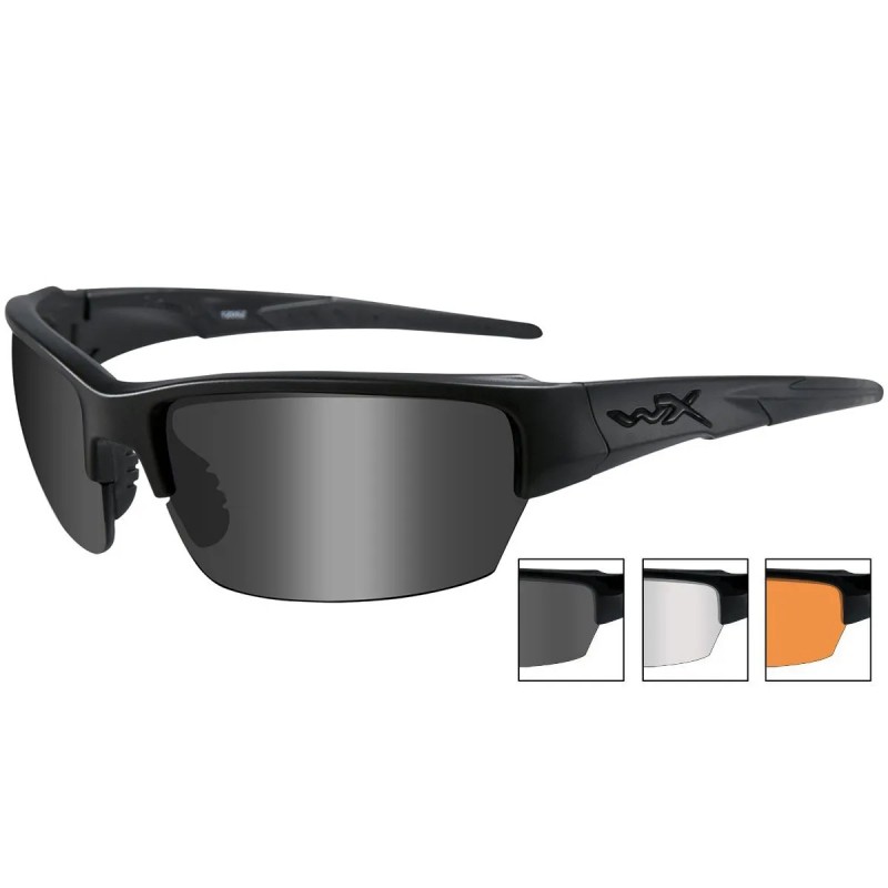 Gli occhiali Wiley X Saint presentano una montatura nera e sono dotati di lenti grigie/trasparenti/ruggine chiaro che possono essere sostituite facilmente
