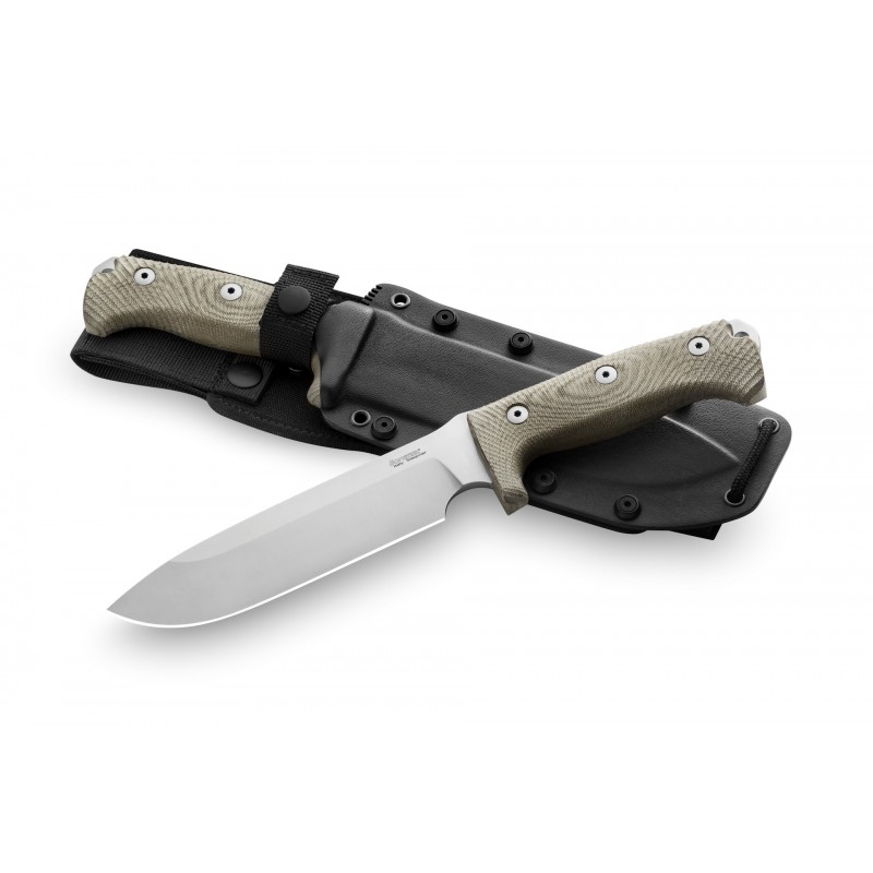 M7 è Il più grande dei coltelli sportivi lionSTEEL. Le dimensioni generose unite all'estrema maneggevolezza consentono una resistenza ai più disparati utilizzi da campo, tra cui il chopping e il batoning:
