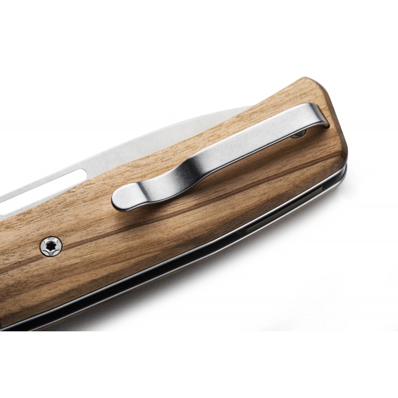 La clip è reversibile e può essere fissata al distanziale in titanio su entrambi i lati con un cacciavite Torx misura 6, quindi questo coltello è uno strumento EDC finemente realizzato anche per i mancini amanti dei coltelli.