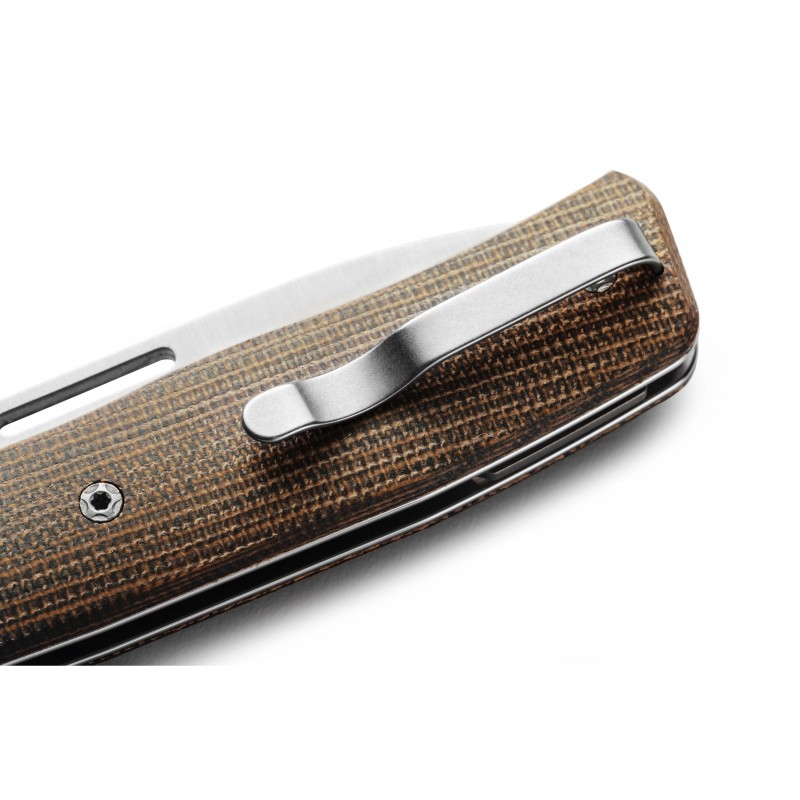 La clip è reversibile e può essere fissata al distanziale in titanio su entrambi i lati con un cacciavite Torx misura 6, quindi questo coltello è uno strumento EDC finemente realizzato anche per i mancini amanti dei coltelli.