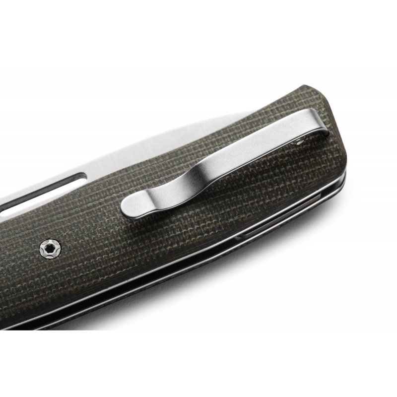 La clip è reversibile e può essere fissata al distanziale in titanio su entrambi i lati con un cacciavite Torx misura 6, quindi questo coltello è uno strumento EDC finemente realizzato anche per i mancini amanti dei coltelli.