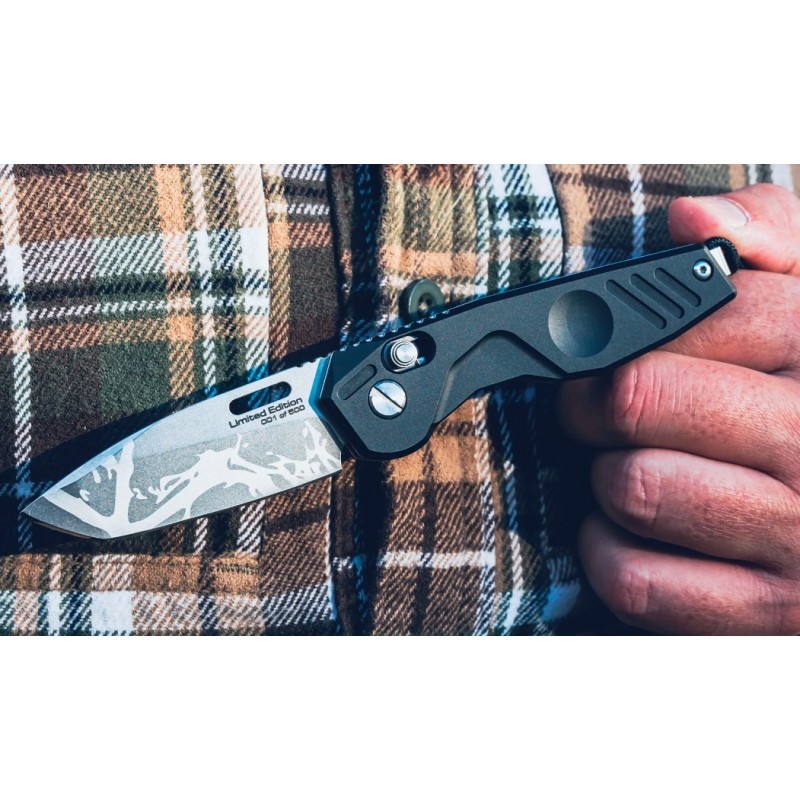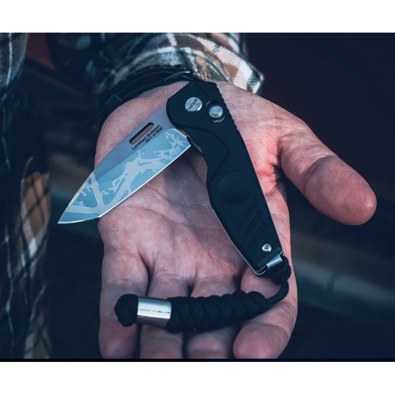 L’incisione laser dedicata, presente sia sulla lama che sulla clip, ne definisce una spiccata identità e ne sancisce l’appartenenza alla serie.