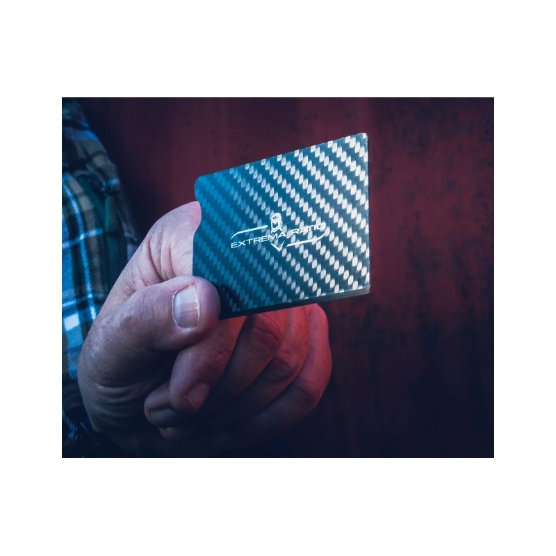 Realizzato in fibra di carbonio. Il bordo inferiore è affilato: questo EDC tool rappresenta una risorsa in caso di necessità di difesa personale. Ha le dimensioni di una normale carta di credito ed entra perfettamente nel portafoglio Extrema Ratio.